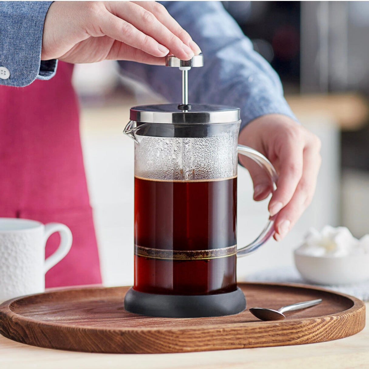 A stainless steel top and frame give it a contemporary appearance, while a crystal-clear glass body ensures optimum visibility and a sturdy black handle enables perfect pours. The versatile design delivers an authentic taste every time.