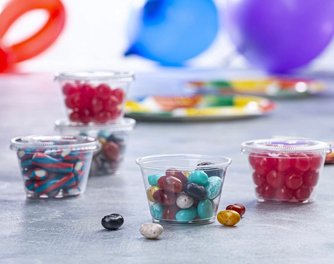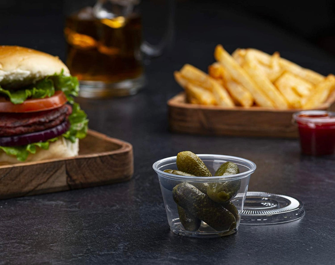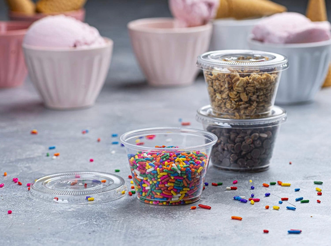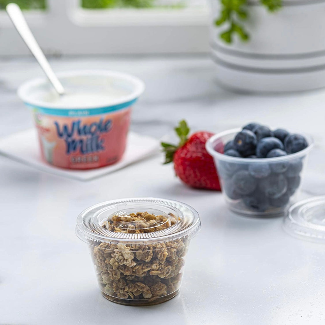 BBINGWARE 4 oz Plastic Clear Disposable Portion Cups with Lids for Sauce Cup BPA Free