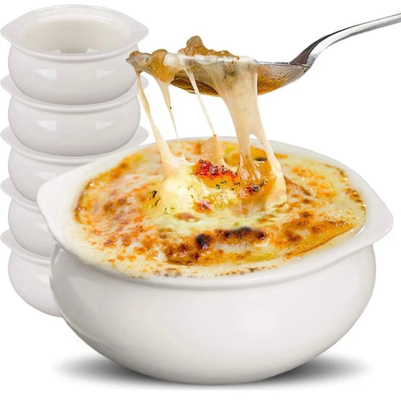 BBINGWARE Set of 4 French Onion Soup Crocks 12 oz White Ceramic Porcelain Bowls