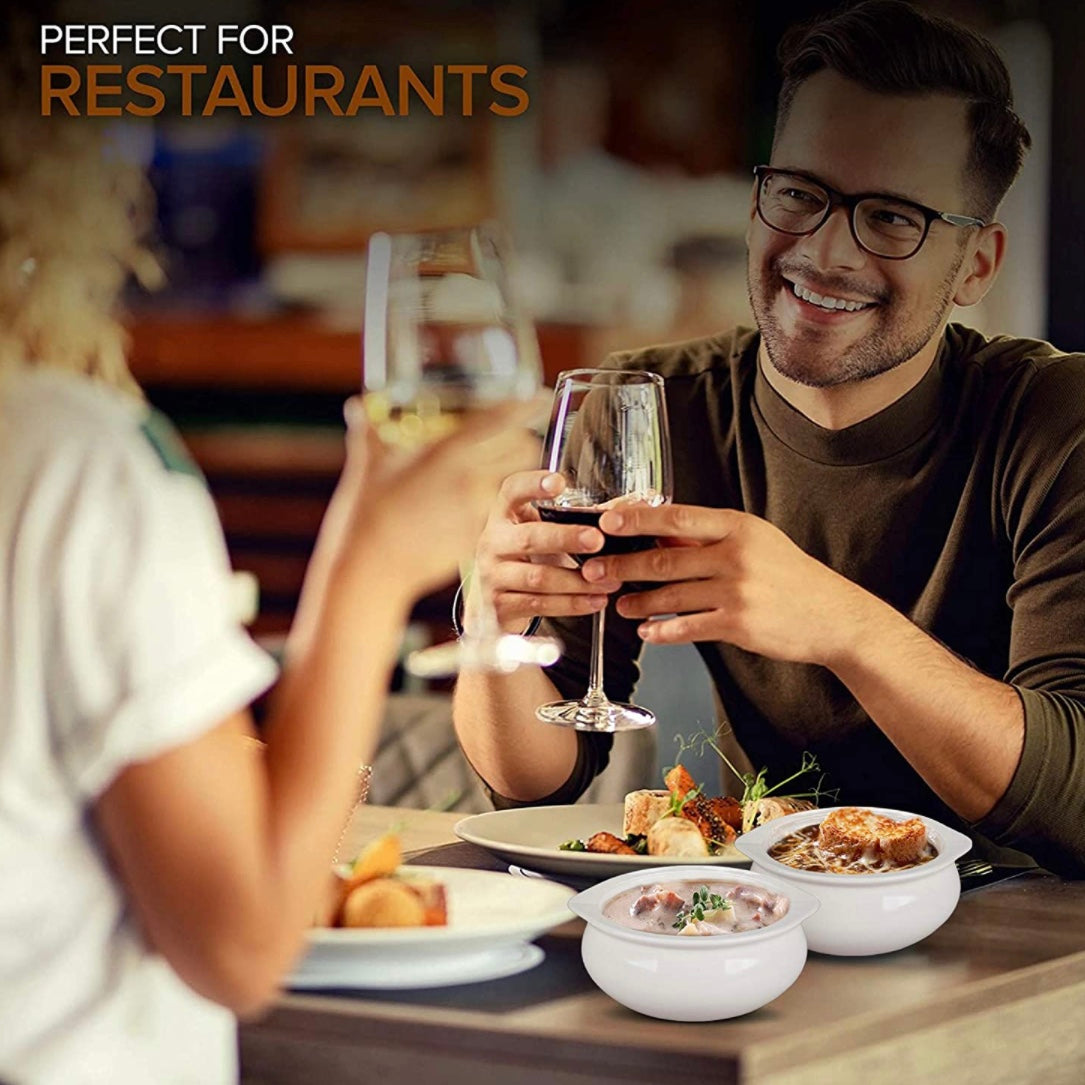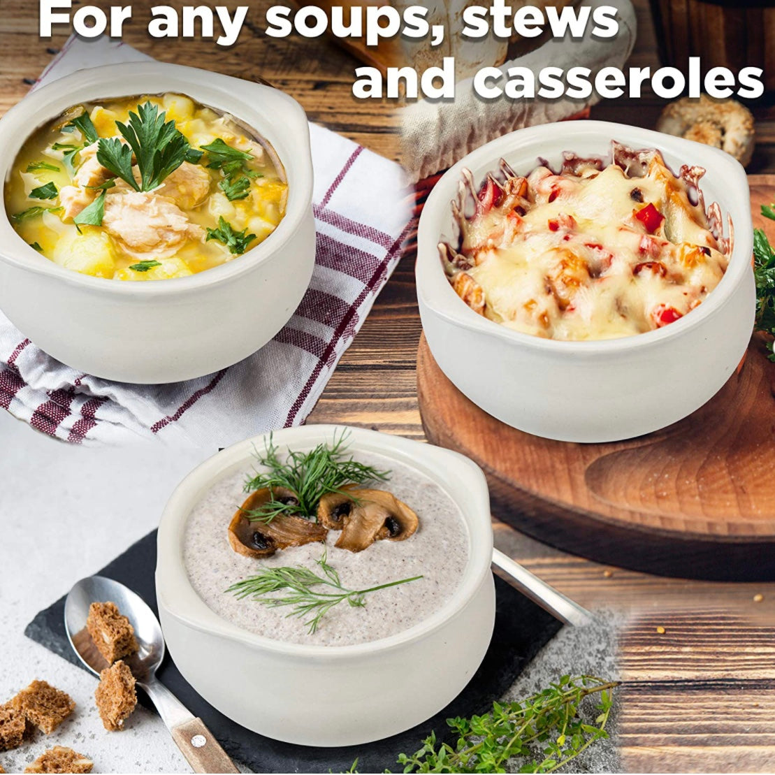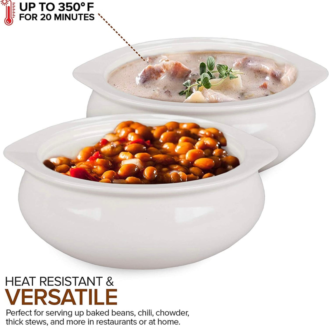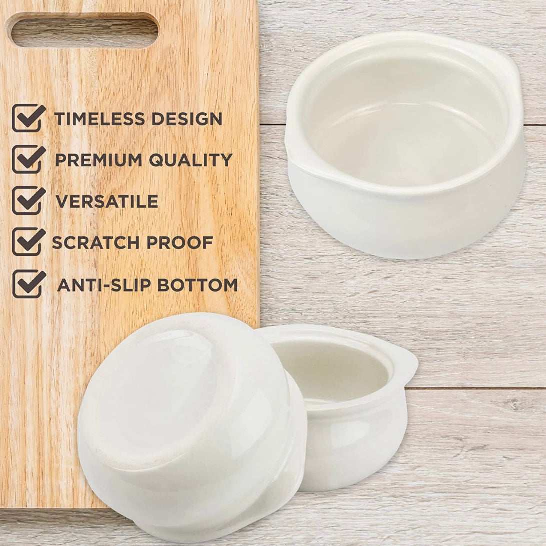 BBINGWARE Set of 4 French Onion Soup Crocks 12 oz White Ceramic Porcelain Bowls