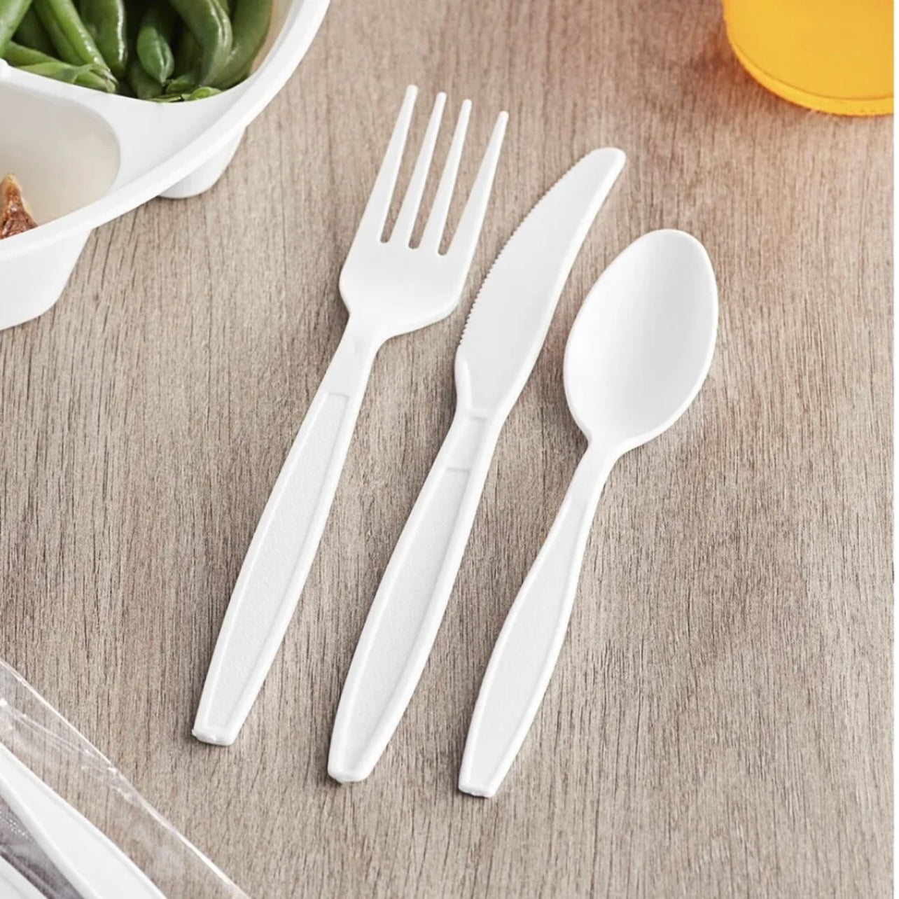 - BBINGWARE Wrapped White Heavy Weight Plastic Cutlery Packs with Knife, Fork, Spoon Party Silverware